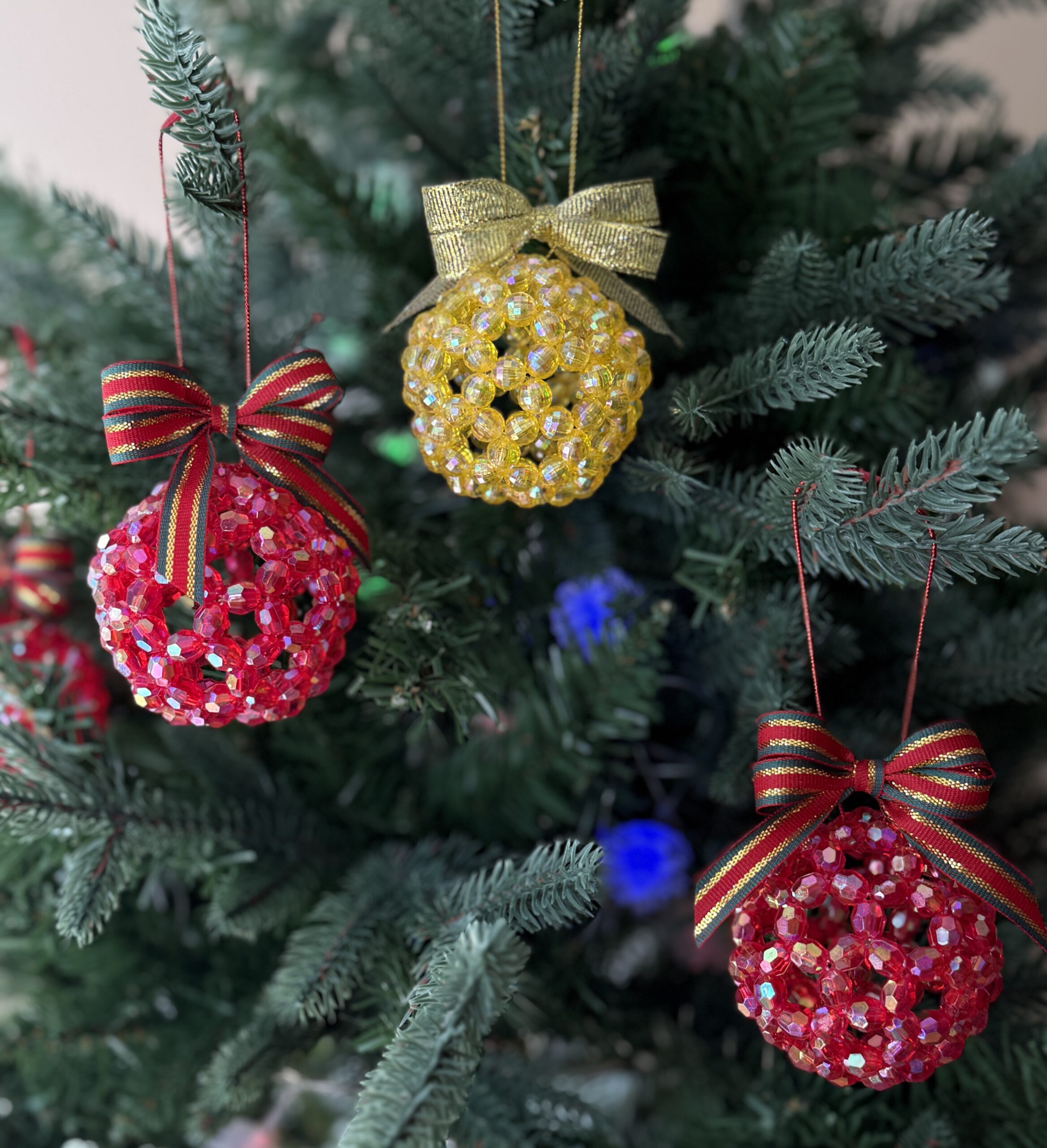 - Material: Acrylic iridescent beads, ribbon