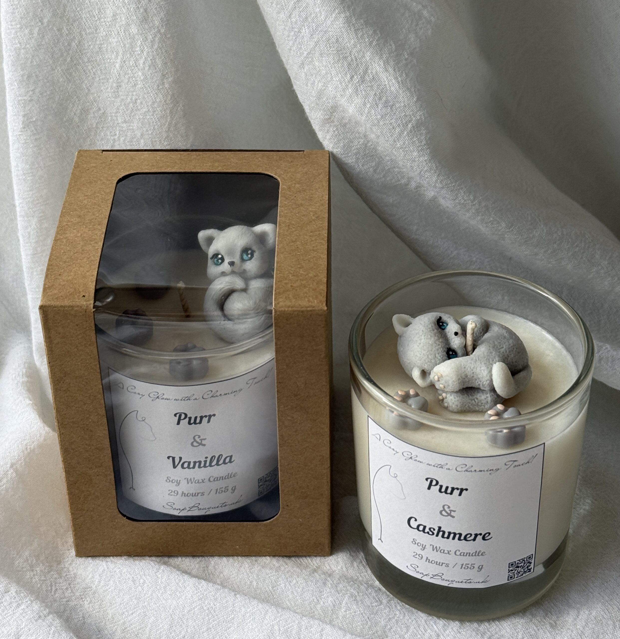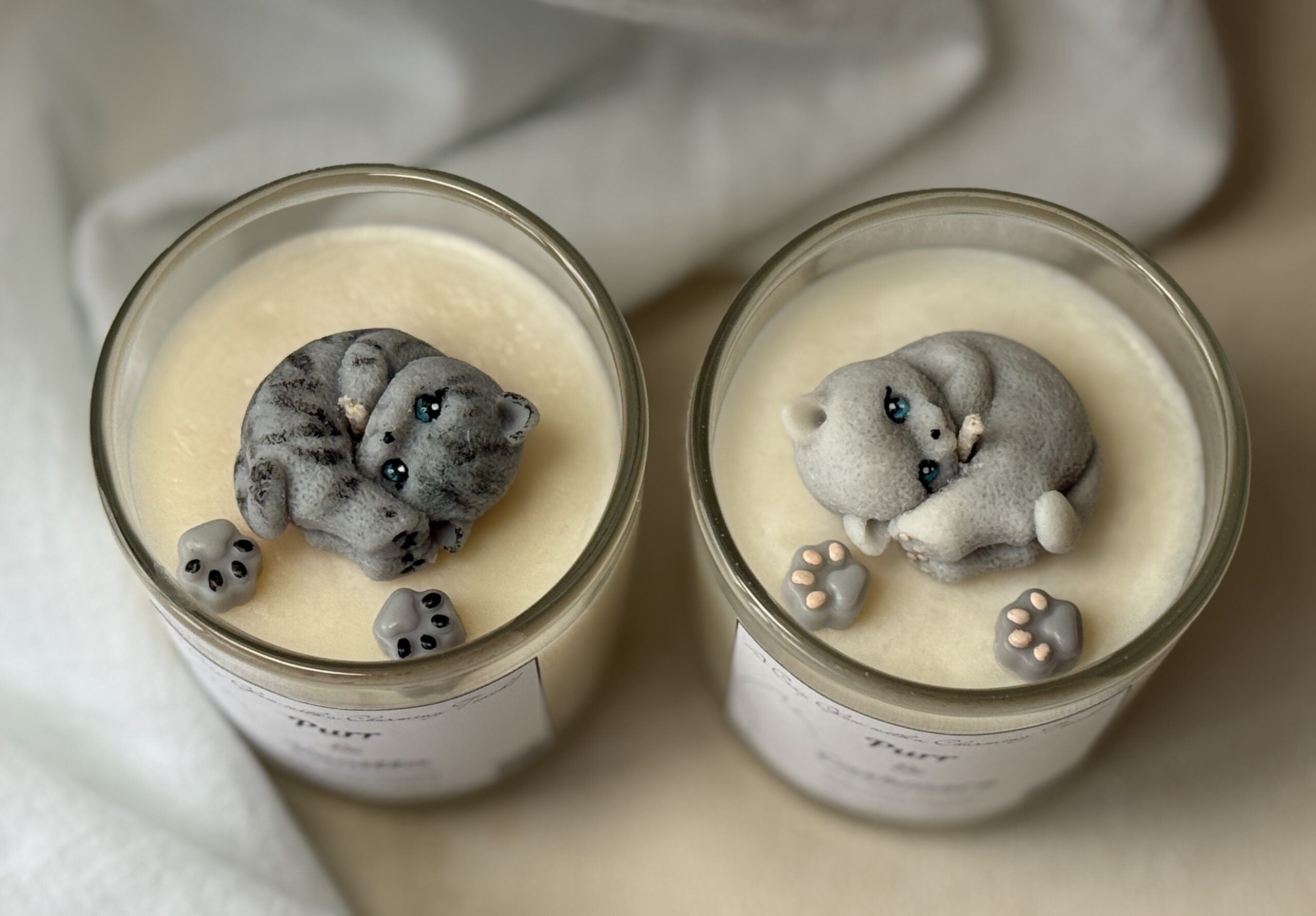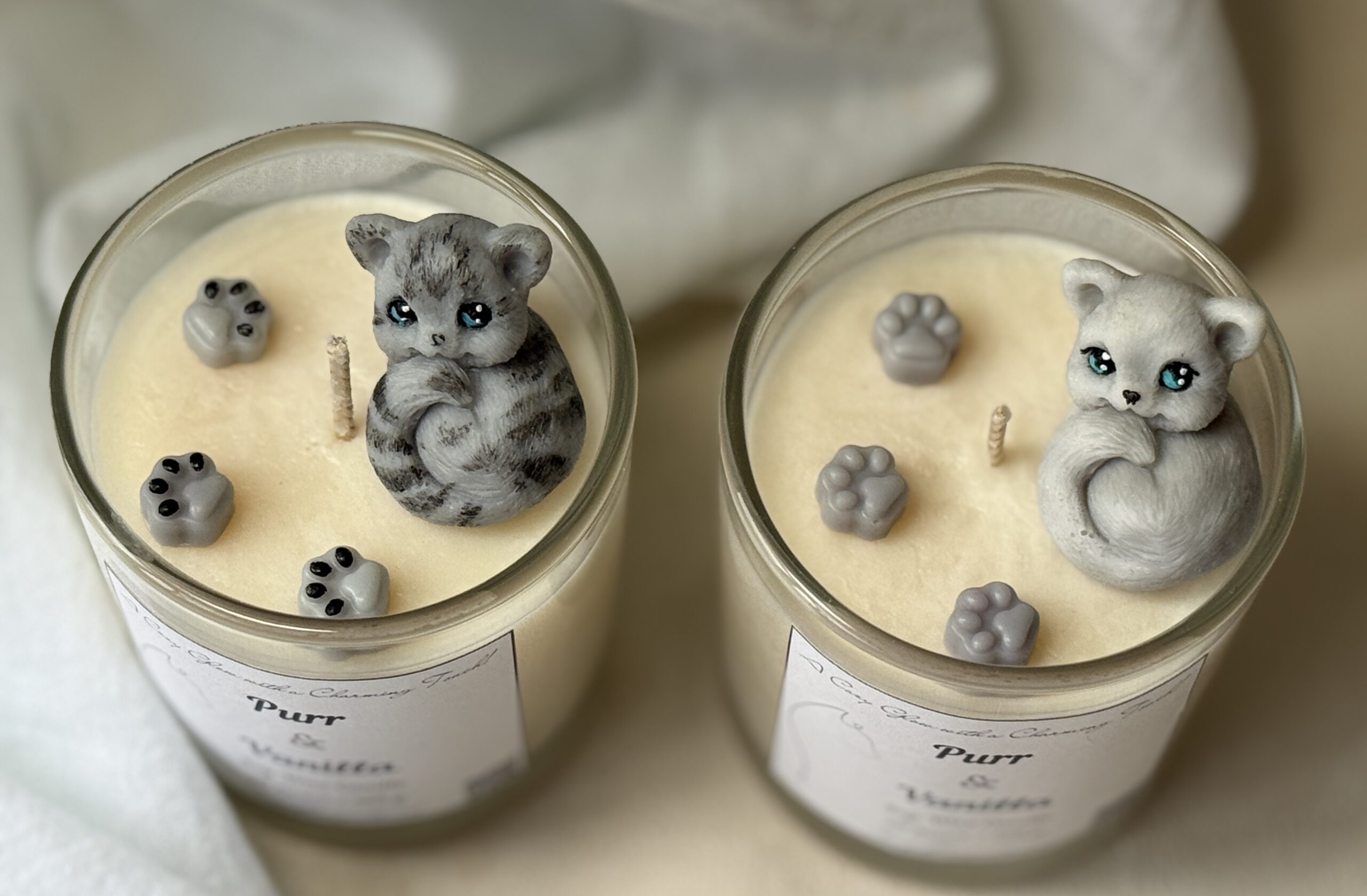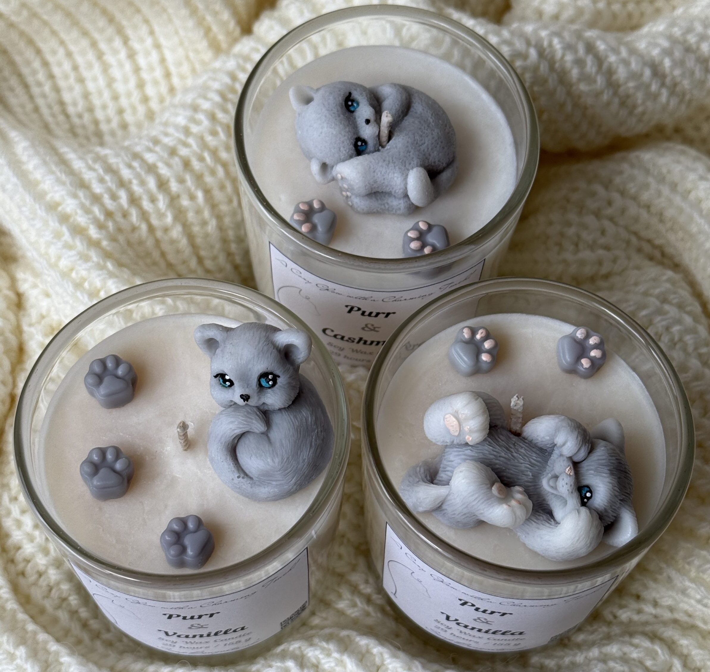 Each candle is handmade, therefore slight variations in kitten detail and finish make every piece unique.