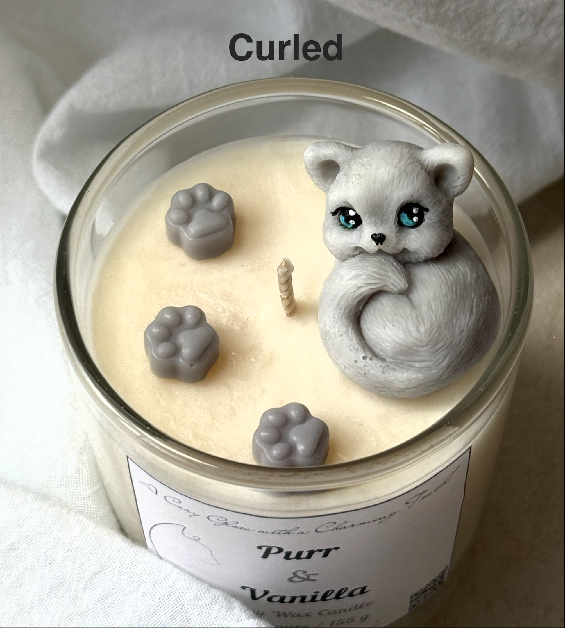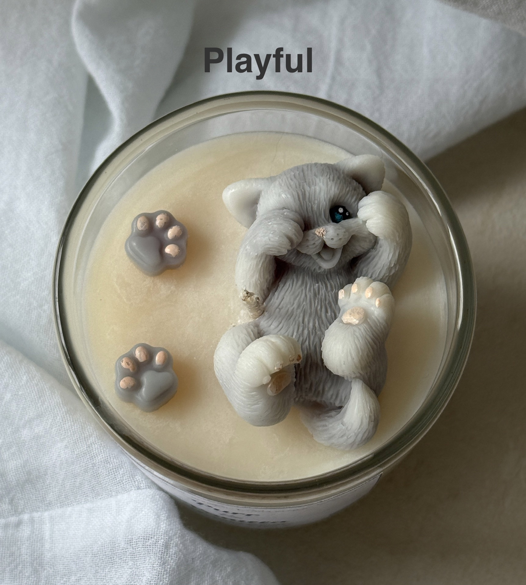 Carefully hand-poured in the UK using natural soy wax, each candle is individually crafted and finished with delicate paw details. The sculpted kitten is made entirely from wax and melts beautifully into the creamy base as the candle burns.