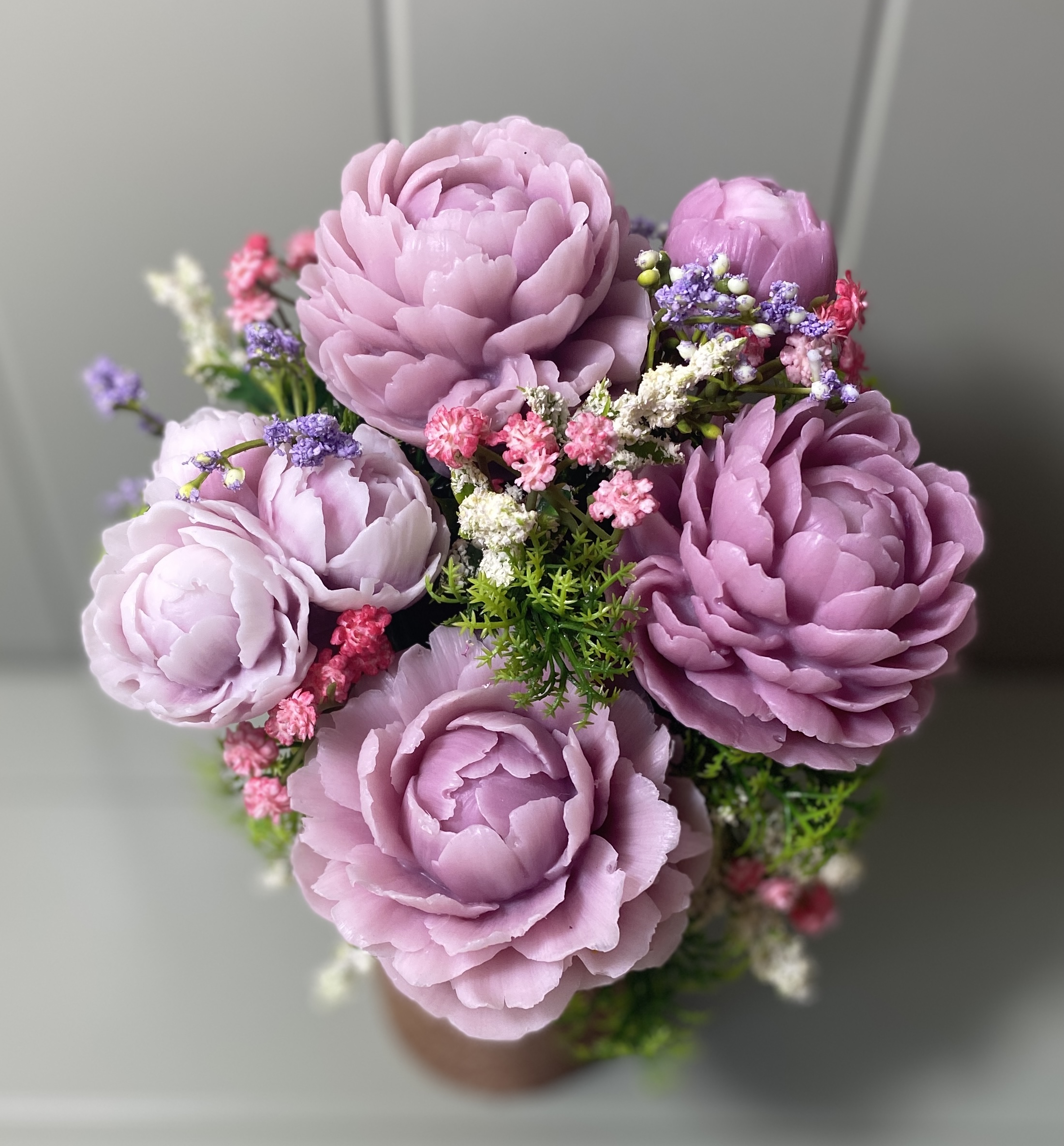 • 7 Handmade Soap Peonies – each petal is meticulously sculpted to create a lifelike bloom.