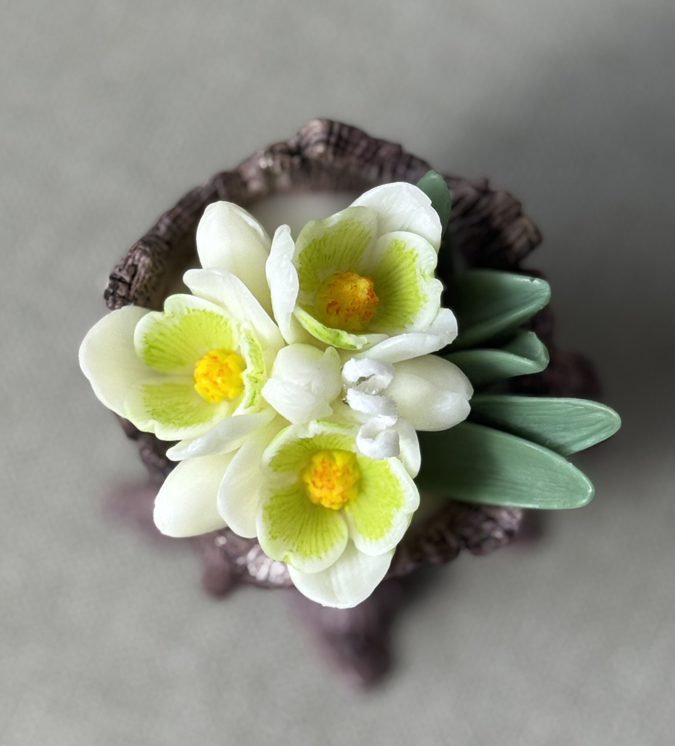 Luxury Flower Candle – Snowdrop in Rustic Stump Holder