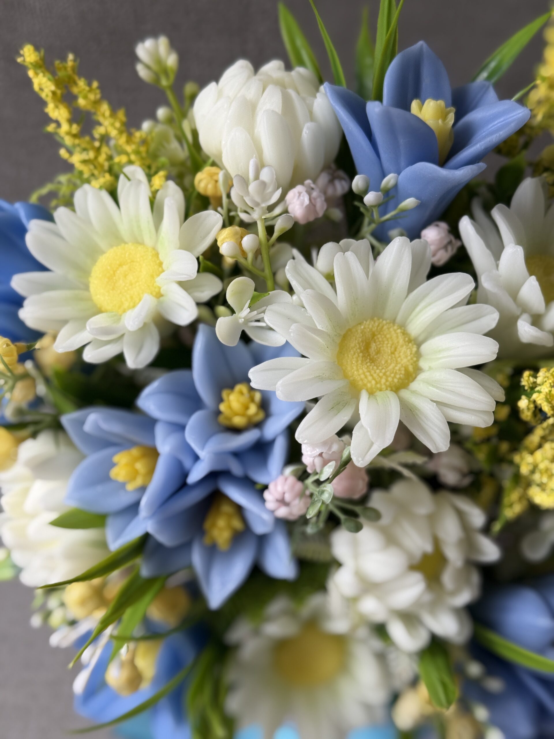 Elegant Mother’s Day Gift for Mum UK featuring a handmade Daisies & Bluebells soap flower bouquet. A luxury spa-inspired alternative to fresh flowers