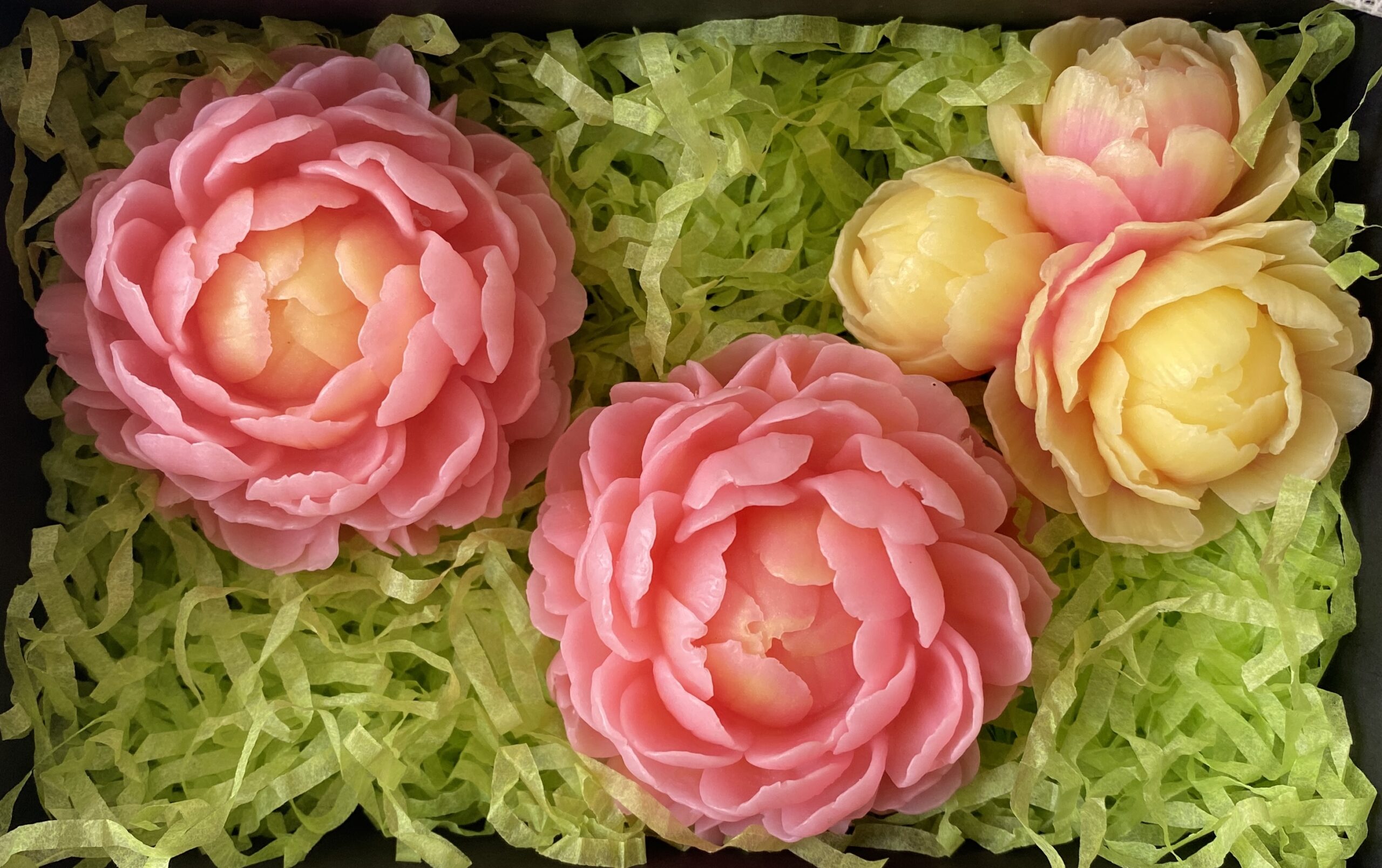 A stunning handmade peony soap gift set featuring intricately designed floral soaps and buds. A perfect luxurious gift for birthdays, Mother’s Day, weddings, and mores.