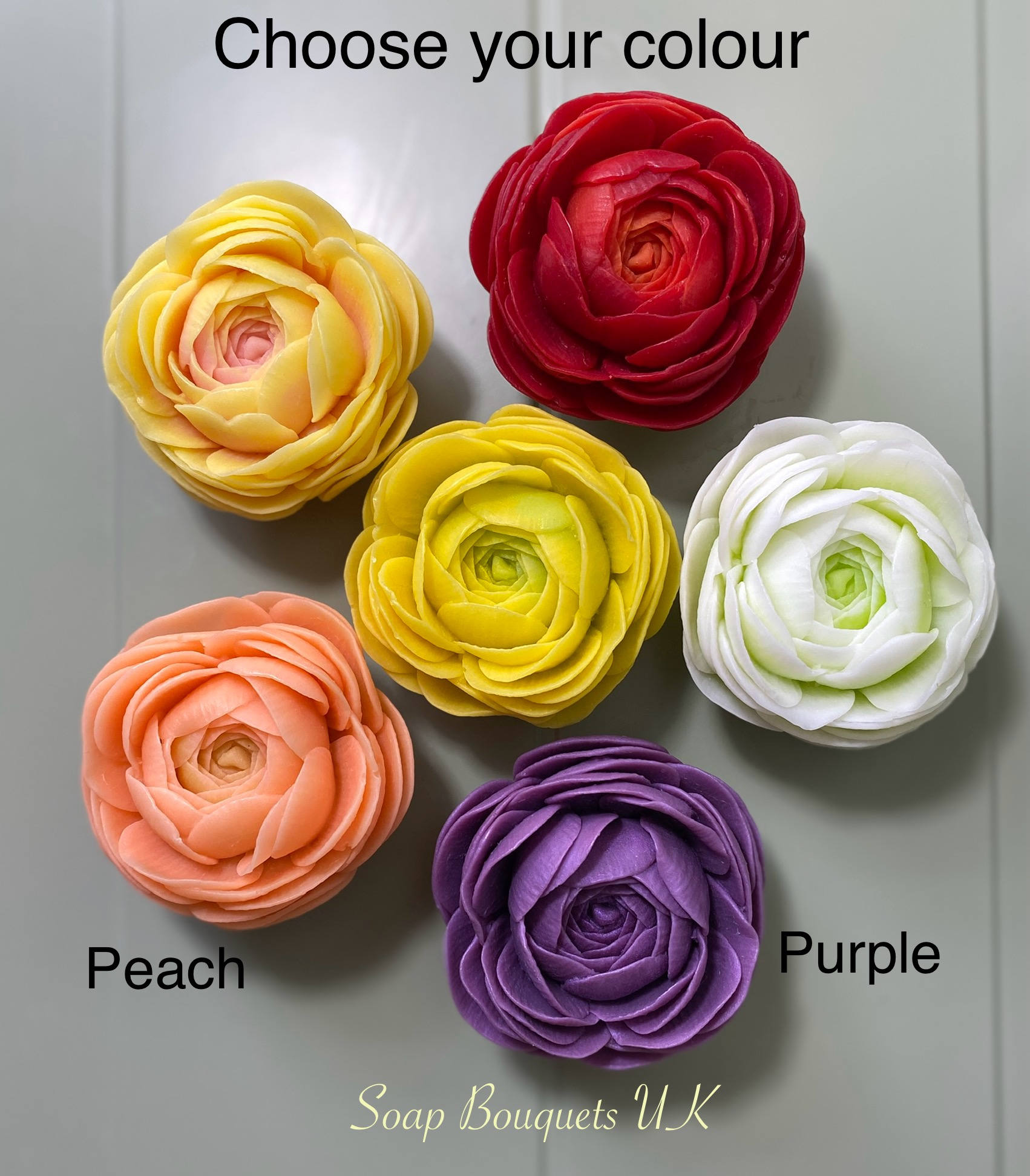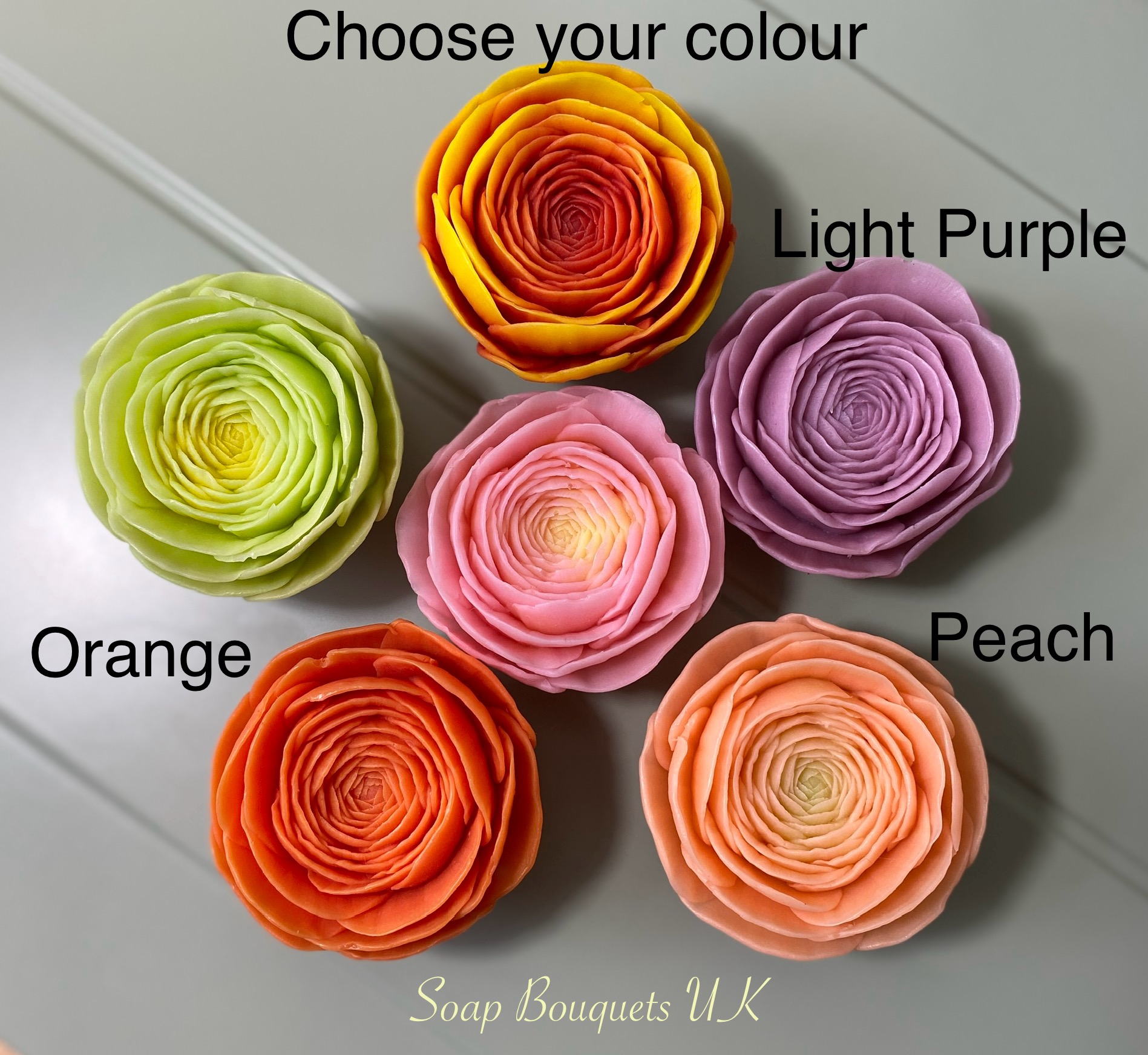 Add elegance and charm to your celebrations with our handcrafted ranunculus soap flowers, also known as buttercups or Persian buttercups. These beautifully detailed vegan soaps are fully customisable in colour, allowing you to create thoughtful and unique gifts for any occasion. Perfect as wedding favours, birthday surprises, or thank-you presents, these soaps combine practicality with aesthetic appeal.