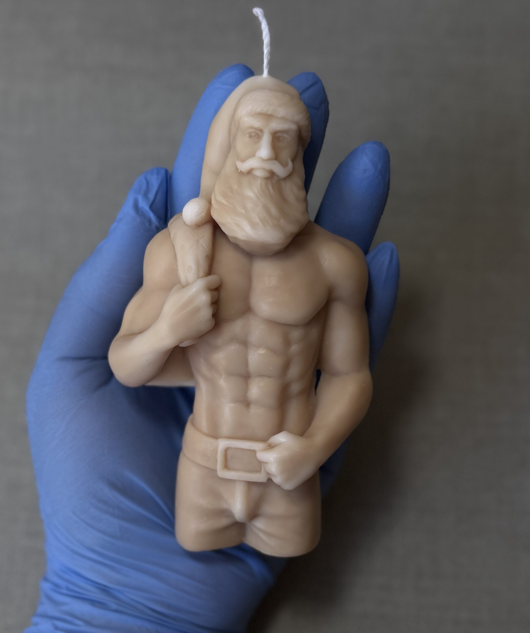 Each candle is handmade, so minor variations in colour and detail make every Sexy Santa totally one-of-a-kind!