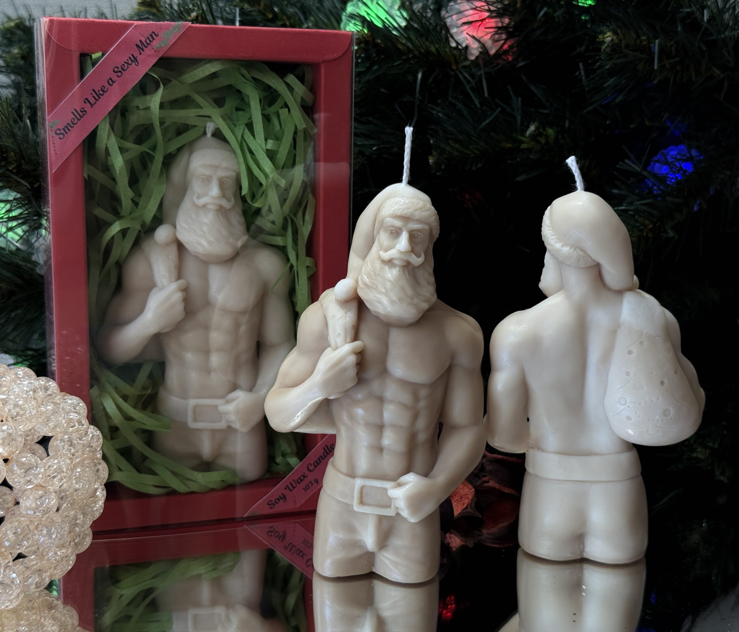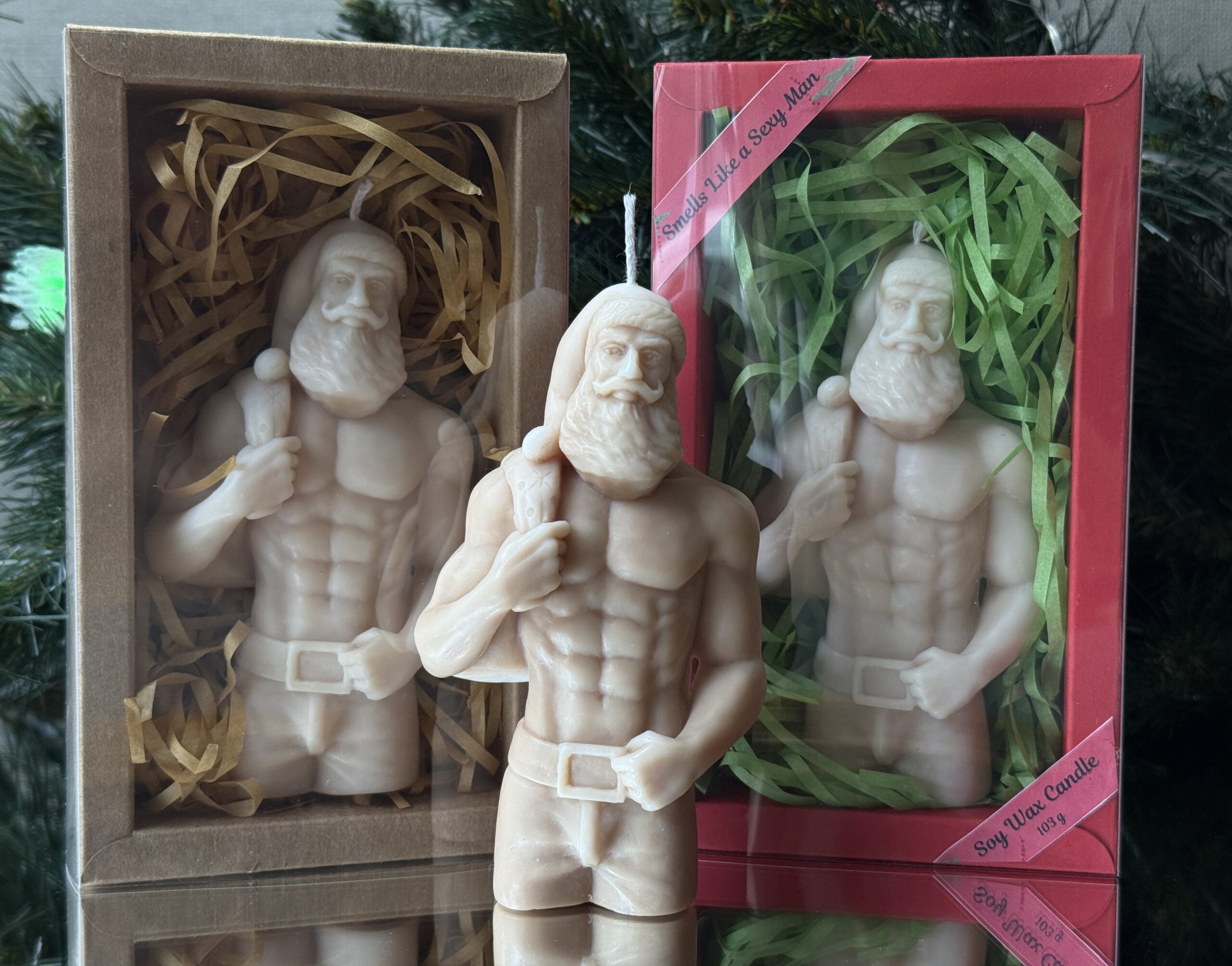 Our Sexy Santa Candle is here to spice up your Christmas gifting! Hand-poured from natural soy wax and featuring a cheeky six-pack Santa pose, this fun festive candle is guaranteed to make them smile — or blush!