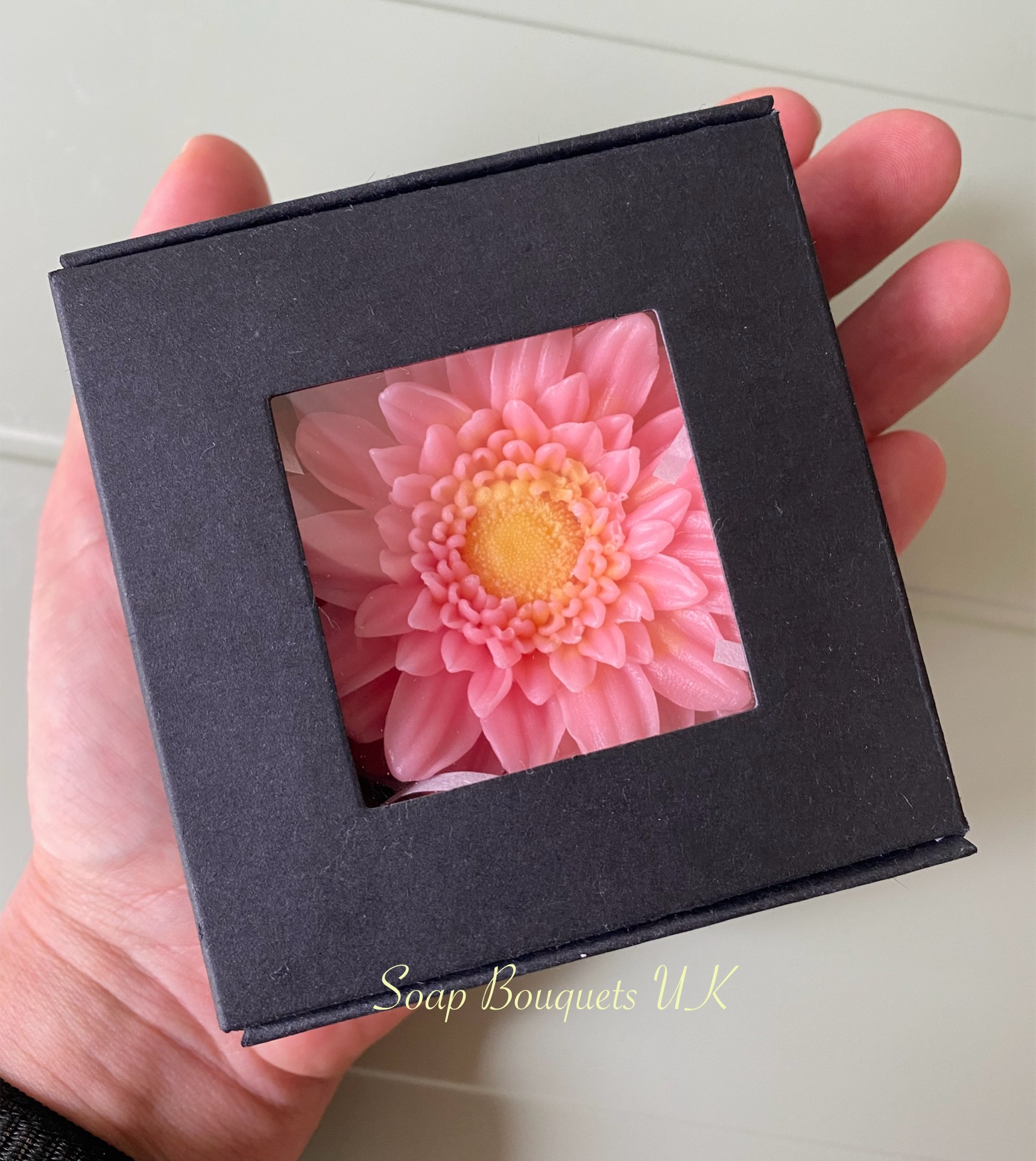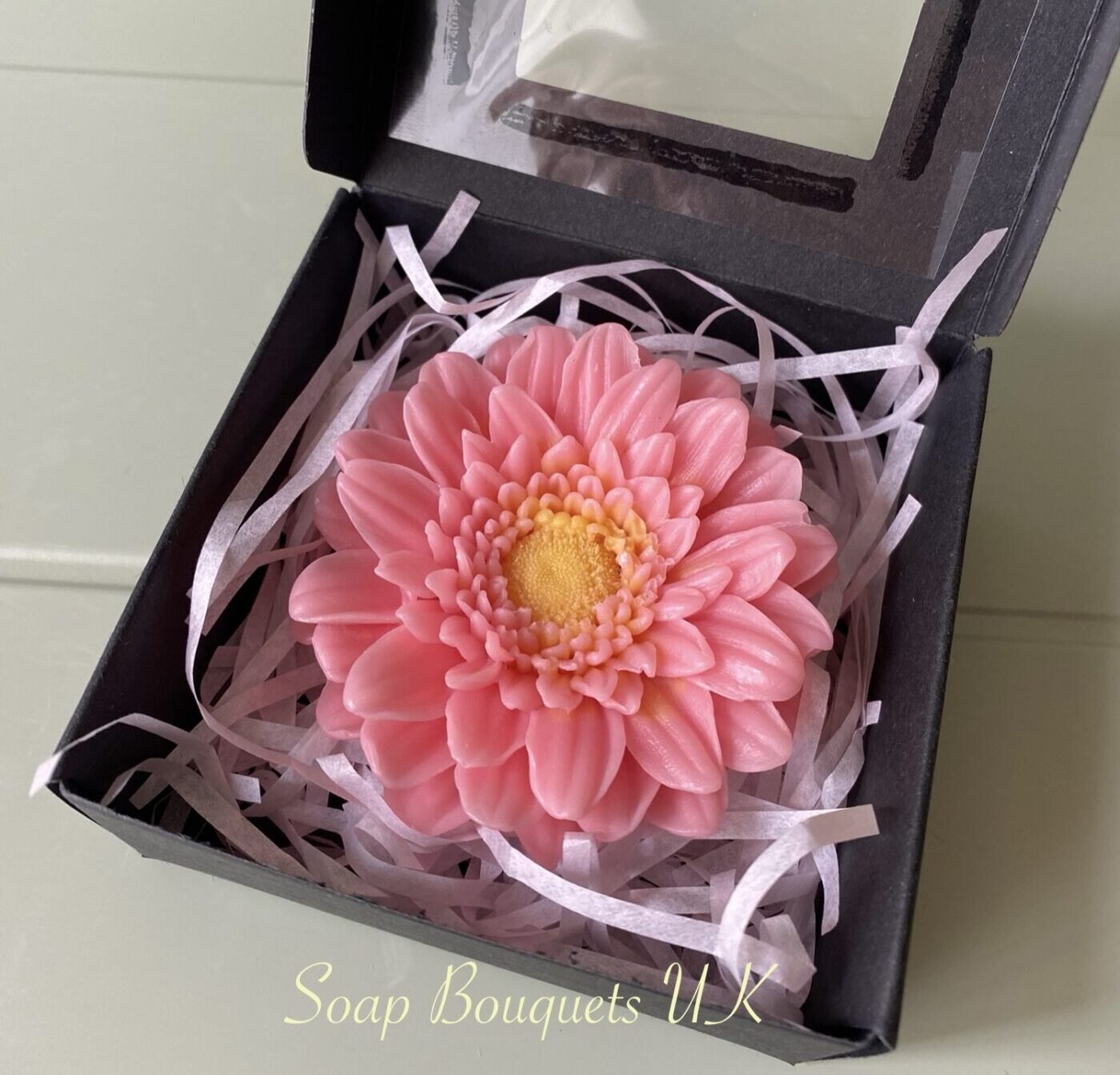 Experience the beauty of our artisan soap gift box, featuring a delicately handcrafted Gerbera soap flower. Designed to resemble real blooms, this handmade soap offers both aesthetic charm and everyday functionality. Infused with captivating fragrances, it’s an ideal thank-you gift for teachers, nursery staff, colleagues, or anyone who appreciates thoughtful presents.