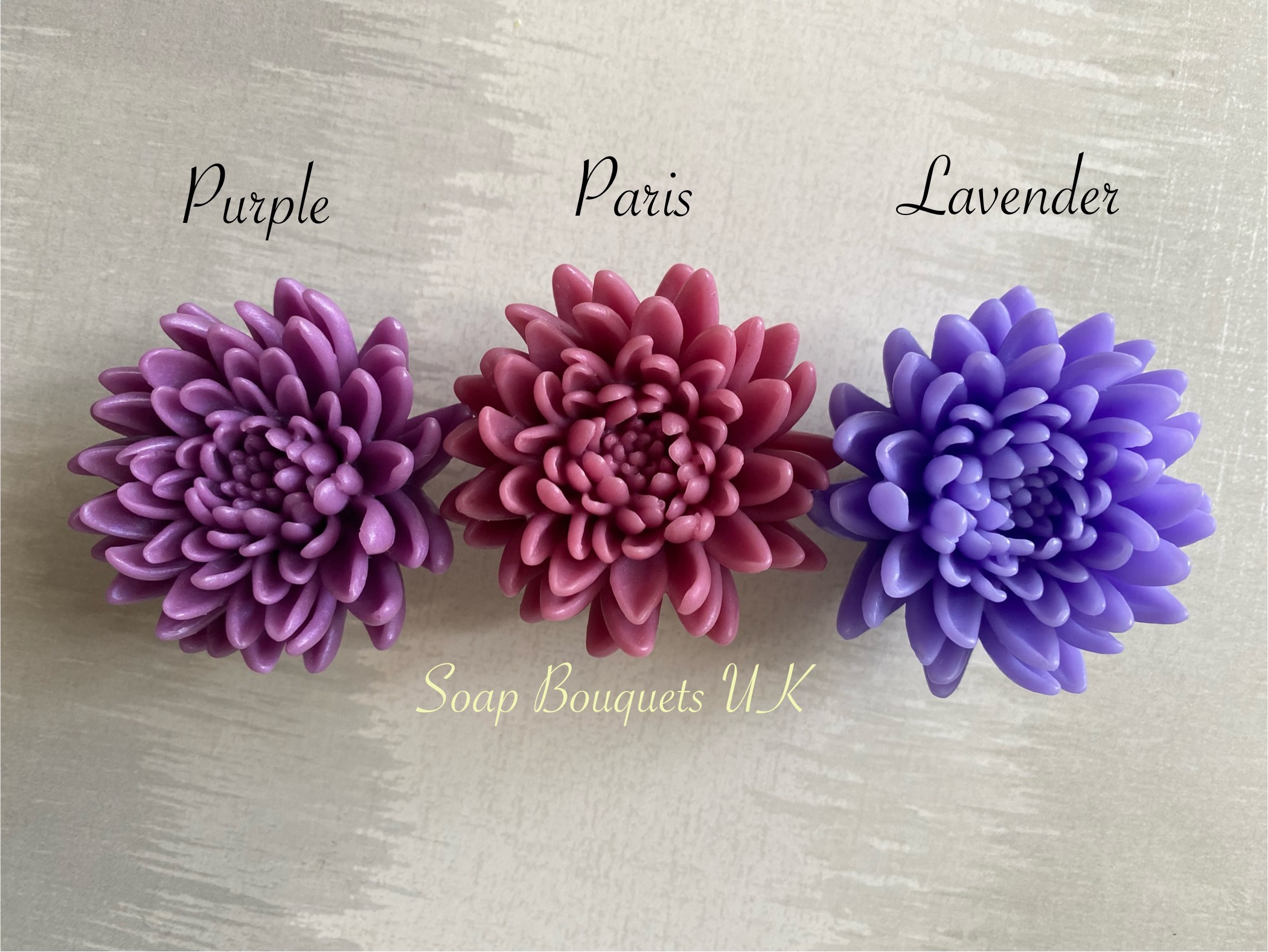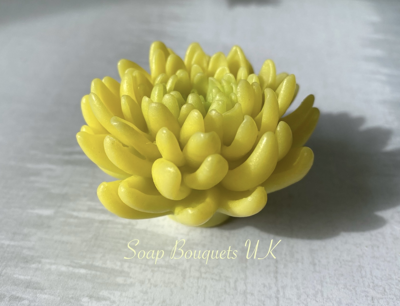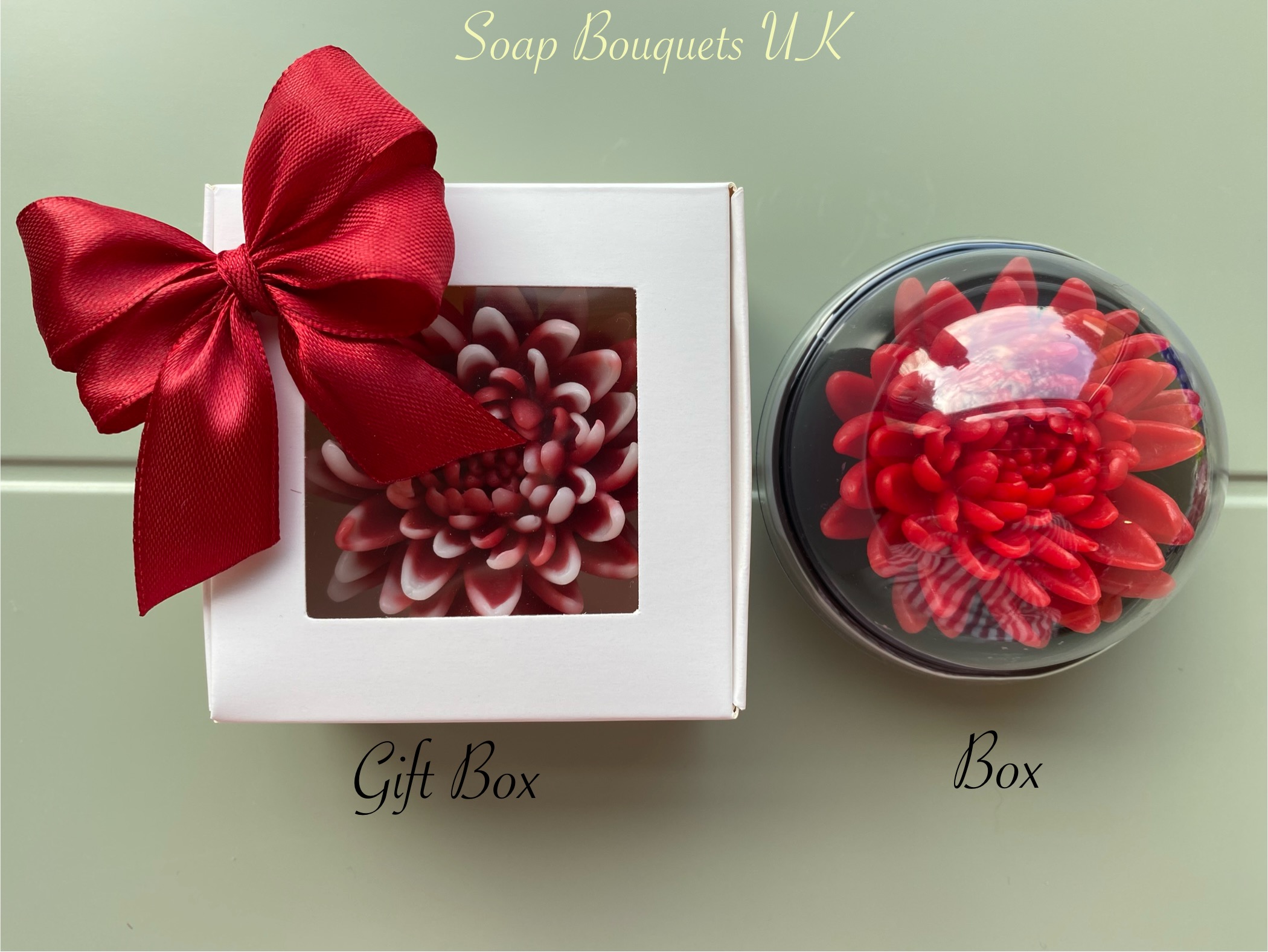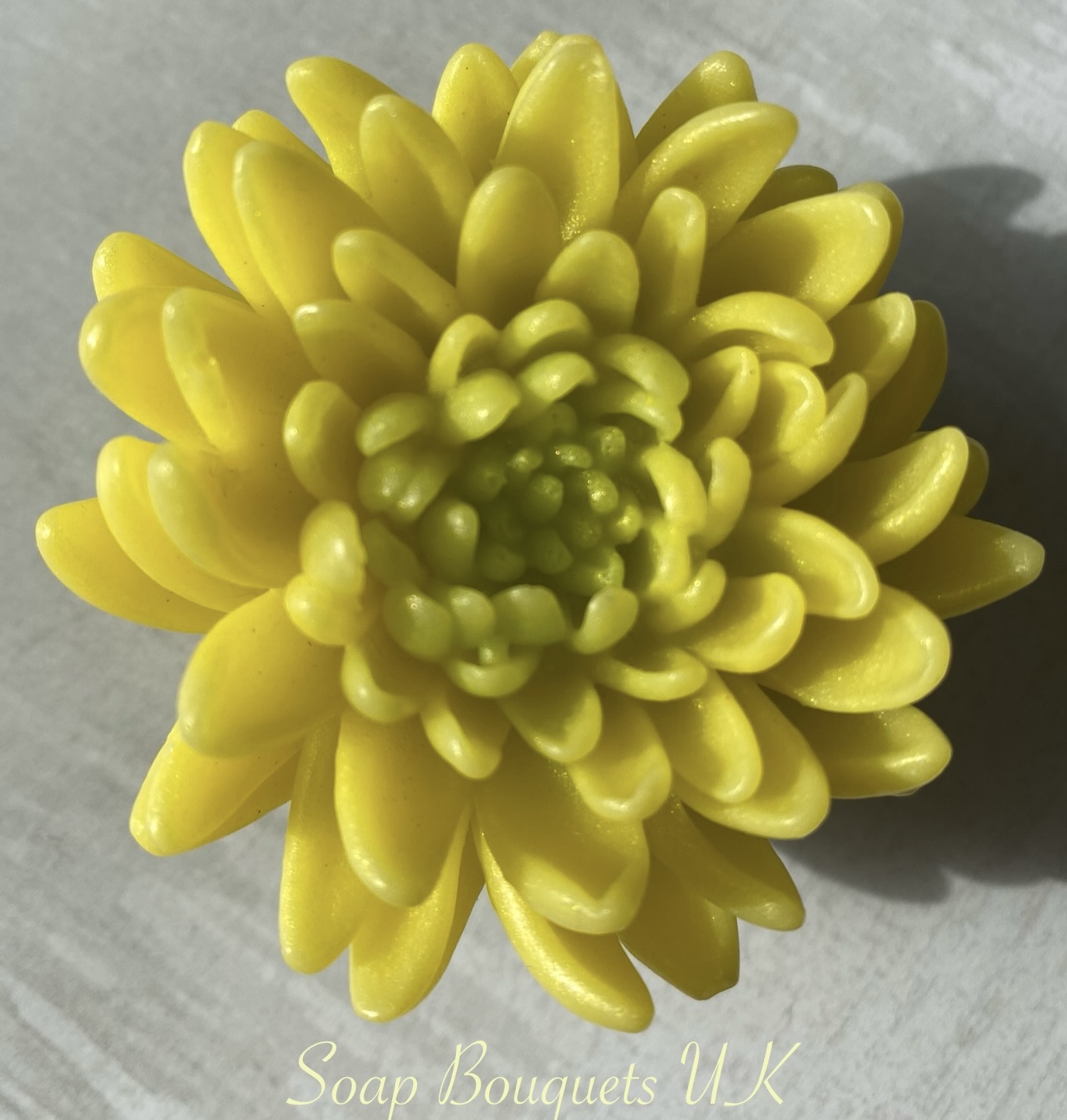 A beautifully handcrafted chrysanthemum soap gift, perfect for teachers, doctors, and colleagues. Made from vegan handmade soap, delicately scented, and available in assorted colours. An elegant and practical soap flower gift for any occasion.